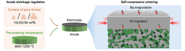 近日,膜工程中心杨维慎研究员、朱雪峰研究员团队提出一种自压缩应力策略,可在降低质子传导燃料电池电解质膜共烧结致密化温度的同时提升其电化学性能。